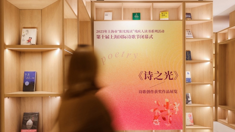 闭幕式当天,在上海书城6楼同步开启“诗之光”残疾人诗歌作品展览,让残疾人的才华与心声被更多读者“看见”和“听见”。肢体障碍者刘双铭写自己的梦想——“有一天我做了一个梦,梦中的我,伶牙俐齿,健步如飞,和你们一样……”视障者张海洋写自己的“眼睛”——“我的眼睛未见过黎明的颜色,指尖却数过三千次日升月落,轮椅碾出的辙痕,是大地写给天空的诗行……”精神障碍者李伟年写自己的灵魂——“色彩隐去,声音消散,我蜷缩在寂静的角落,像一只受伤的困兽,舔舐着伤口,但我听见,灵魂在深处呐喊……”